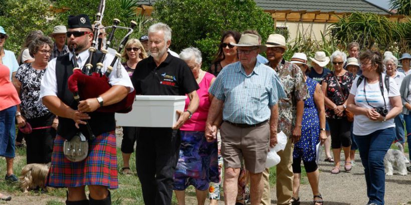 Na poslednji počinak ispratilo ga je gotovo šezdeset ljudi. Član Velingtonovog doma za rehabilitaciju ptica, gde je Tomas proveo svoje poslednje dane, nosio je mali kovčeg u kome se nalazilo beživotno gusanovo telo. Tomasovo telo je položeno pored njegovog pokojnog partnera sa kojim je proveo gotovo trideset godina – labuda Henrija.