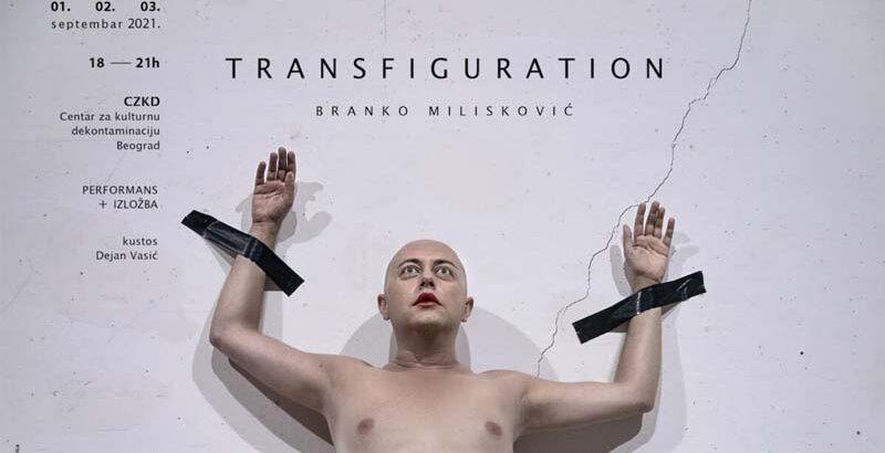 TRANSFIGURATION/TRANSFIGURACIJA je performans dugog trajanja (durational performance), kojim Branko Milisković tokom tri dana, izvodi svoja tri najzahtevnija performansa, koji su nastajali u poslednjih petnaest godina. Prvi dan PASSION, Pasija odnosno stradanje, otelotvorena je personifikacija žaljenja. Androgina figura STABAT MATER, korača pored grobnih parcela, pevajući u agilnom operskom stilu u trajanju od tri sata. Kroz tri prve strofe trinaestovekovne himne Mariji, koja stoji pod krstom i oplakuje svoga sina, Isusa Hrista, pod nazivom STABAT MATER DOLOROSA (Stajala je uplakana majka), oplakuje ljudsko stradanje, i na taj način, samu sebe transformiše. Drugog dana, METAMORPHOSIS/METAMORFOZA, nago telo, originalnog naziva ‘710196’, postavljeno je na stolu, intenzivno prisutno, a publika je pozvana da ga u tišini obilazi, da mu se približi i na taj način postane deo mizanscena. Treći dan, TRIUMPH, dan Pobede, predstavlja finale transfiguracija. Tokom tri sata, Milisković na sceni salutira crvenom zastavom, simbolično objavljujući trijumf nakon stradanja, pobedu života i poziv za borbu.