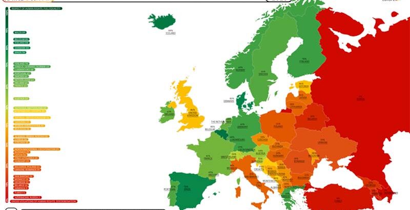 U najnovijem izveštaju ILGA-Europe za 2025. godinu, koji meri napredak LGBTI prava širom Evrope kroz tzv. Rainbow Map, Ujedinjeno Kraljevstvo, Mađarska i Gruzija zabeležile su najveće padove. Velika Britanija je pala za šest mesta i sada se nalazi na 22. mestu, što je njen najgori plasman otkako se prati ovaj indeks. Mađarska je pala za sedam mesta i sada je 37, dok je Gruzija, takođe s padom od sedam mesta, skliznula na 44. poziciju. Ove promene reflektuju širi trend urušavanja demokratskih vrednosti i ljudskih prava u Evropi.