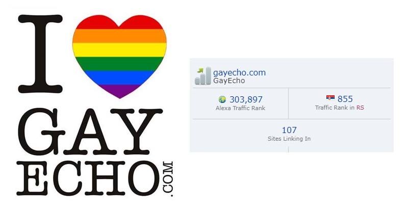 Sajt www.gayecho.com ušao je u TOP 1000 najposećenijih sajtova u Srbiji, pokazuju podaci Alexa.com za Srbiju.